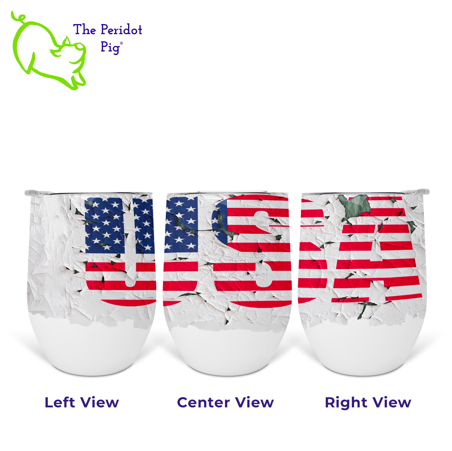 Perfect for the summer bar-b-que! Show your patriotic spirit with our new shabby chic wine tumblers. These feature a chipped paint print with USA in a stars and stripes pattern. Don't worry, the image won't peel off! It's printed in a permanent print that will last a long time.