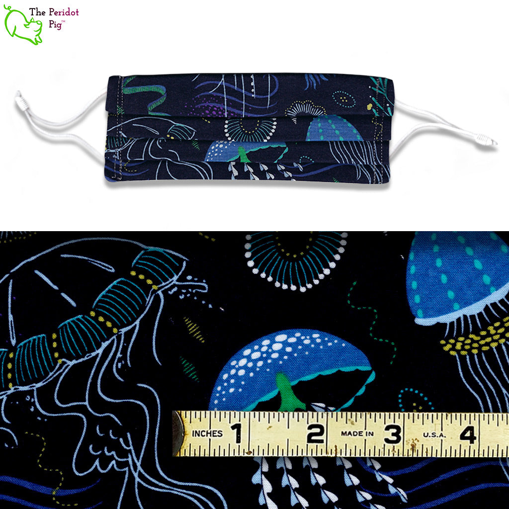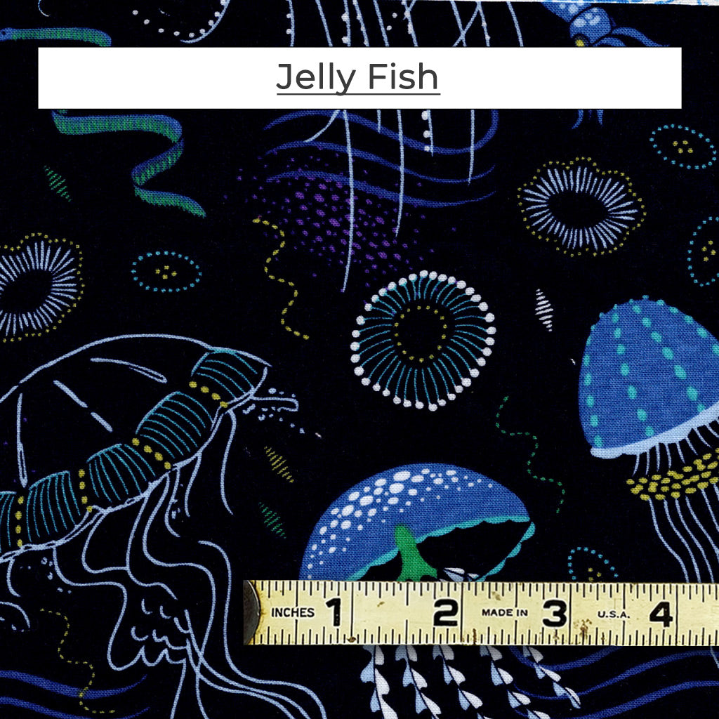We couldn't find any fabric with Cthulhu so we settled for this cool jelly fish pattern. Jelly fish are so mesmerizing. This print has delicate jellies on a deep blue background.