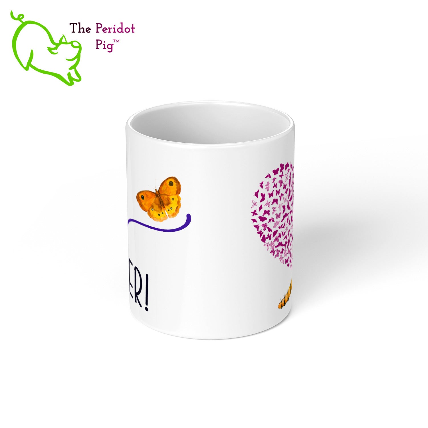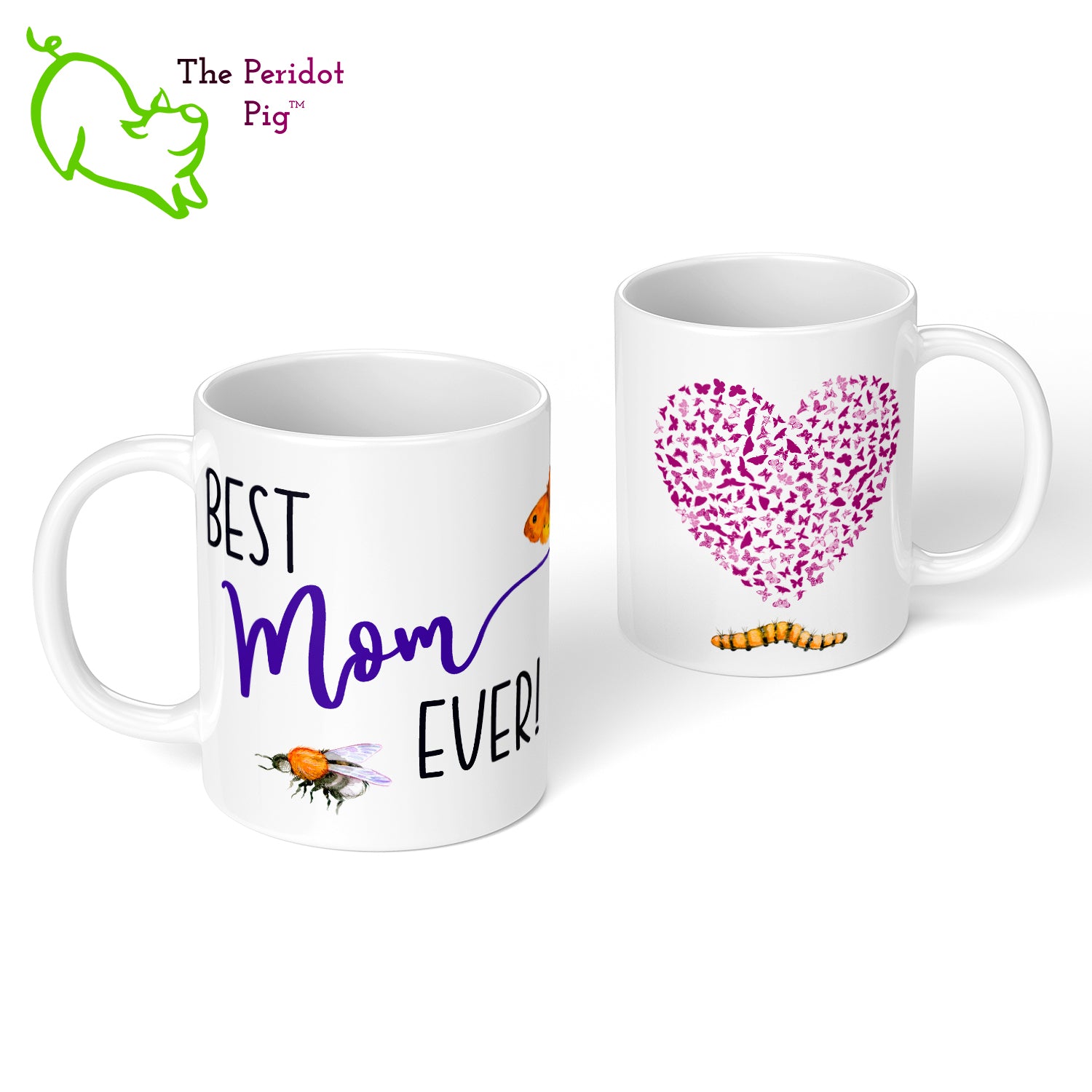 If your mom likes insects, this fun little mug is the perfect gift. Celebrate Mother's day with a gift that embraces those little pollinators. The mug says, "Best Mom Ever!" on the front. On the back, it has a heart filled with butterflies and a little caterpillar underneath.