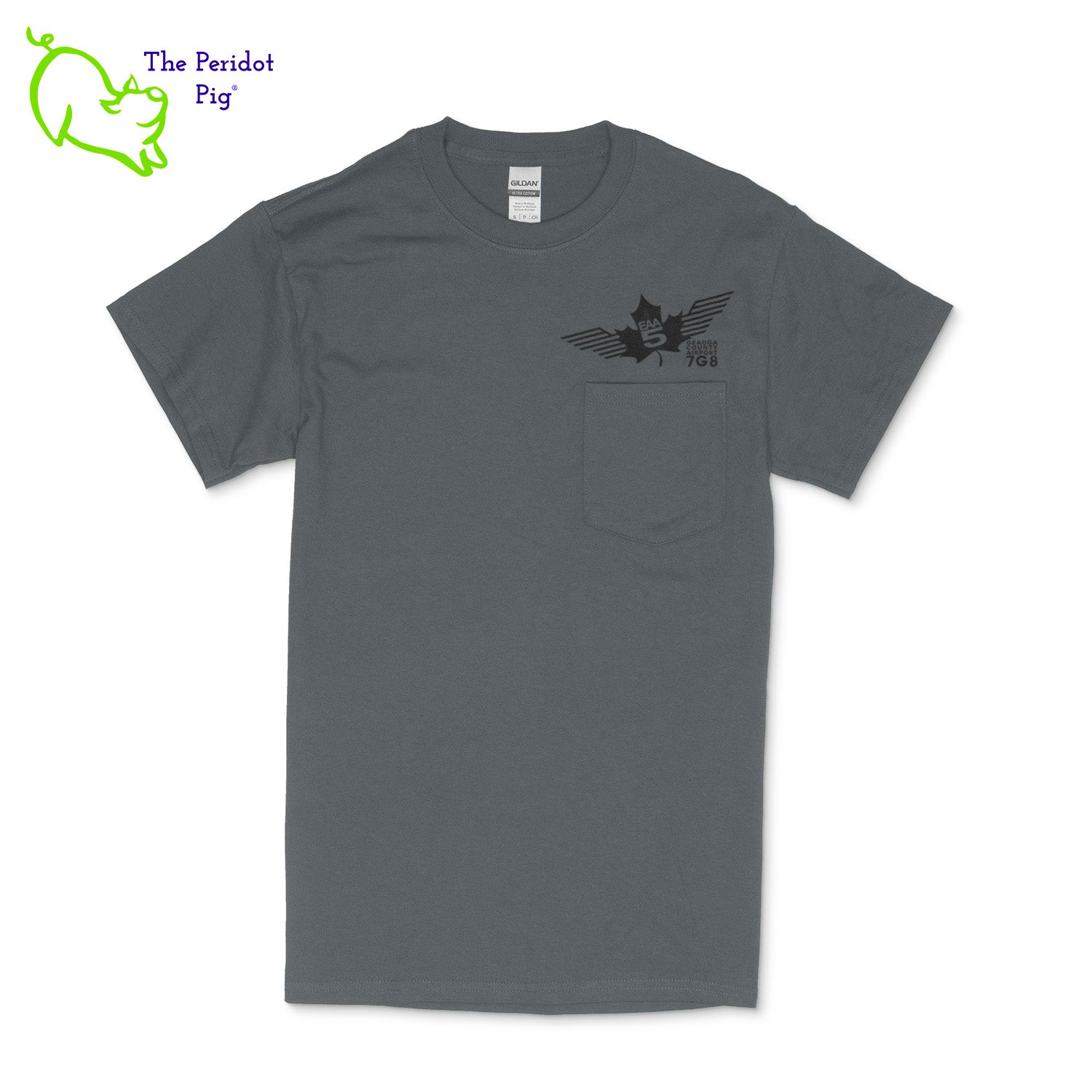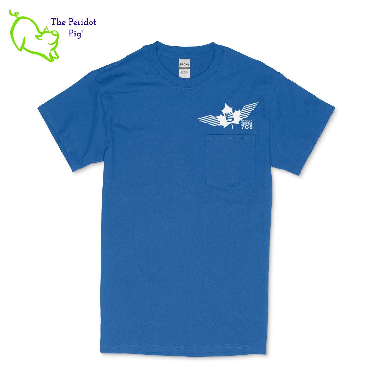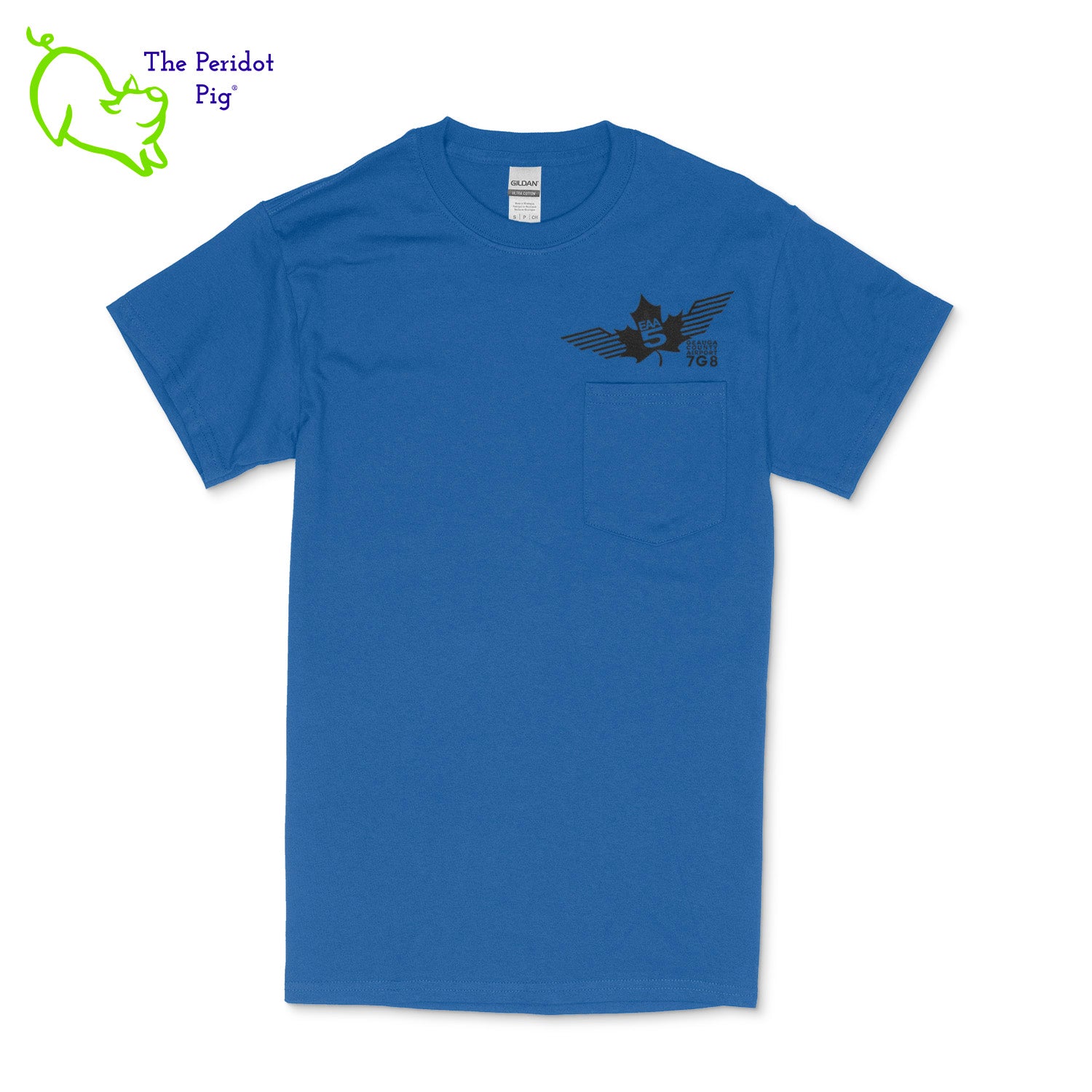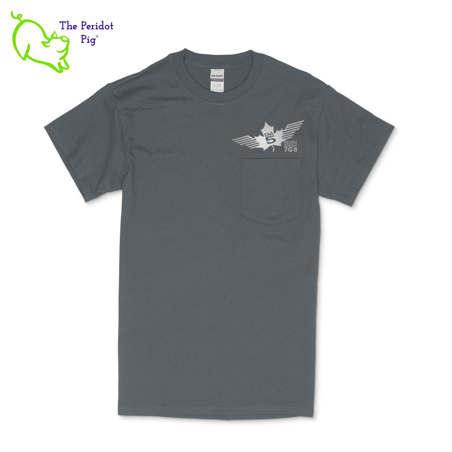 Crafted from a soft and comfortable material, this t-shirt features a loose cut, a front pocket and the EAA Chapter 5 logo in your choice of color on the front and back. You can also chose from four different colors for the shirt. The front logo is small and sits over the pocket. The back logo is larger and wraps around the back of the shirt.