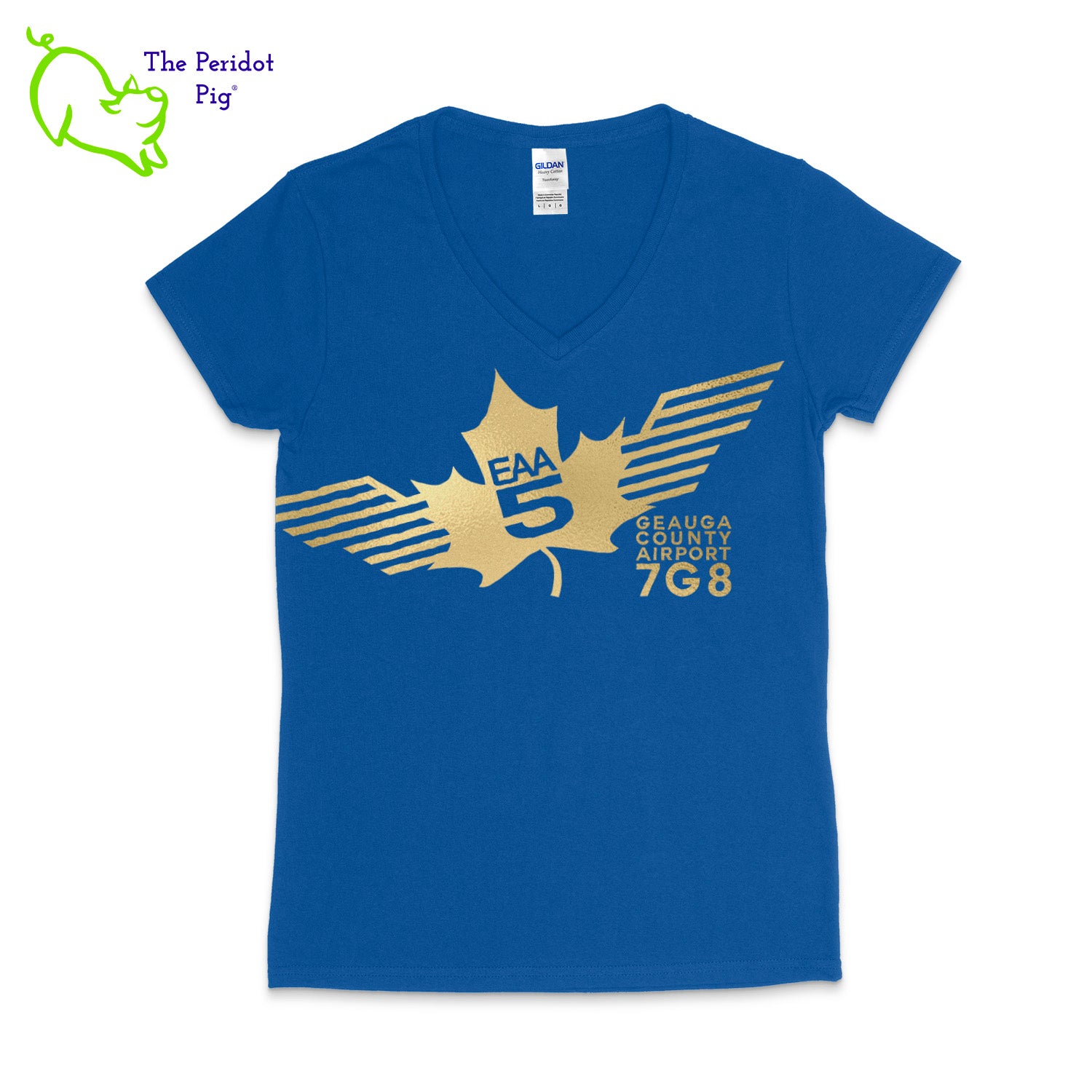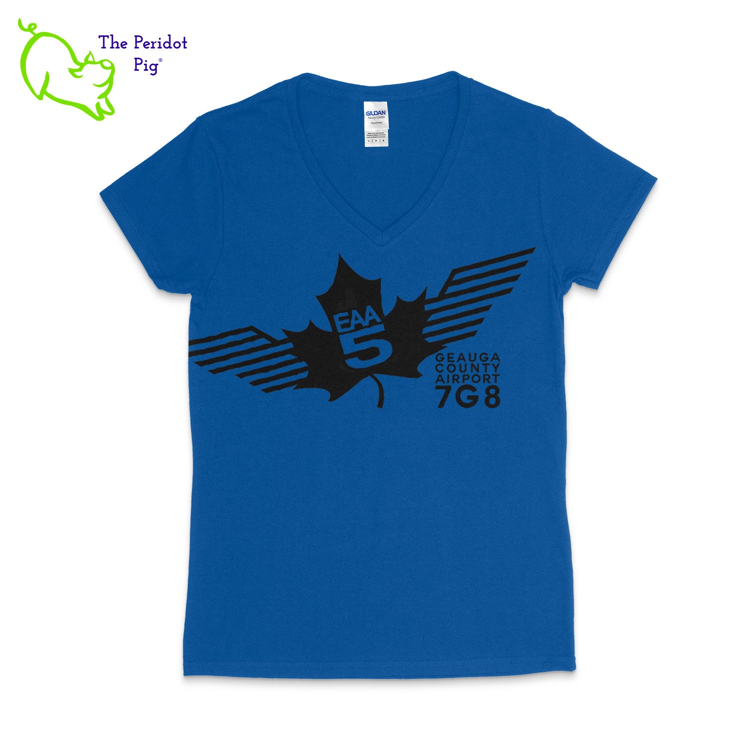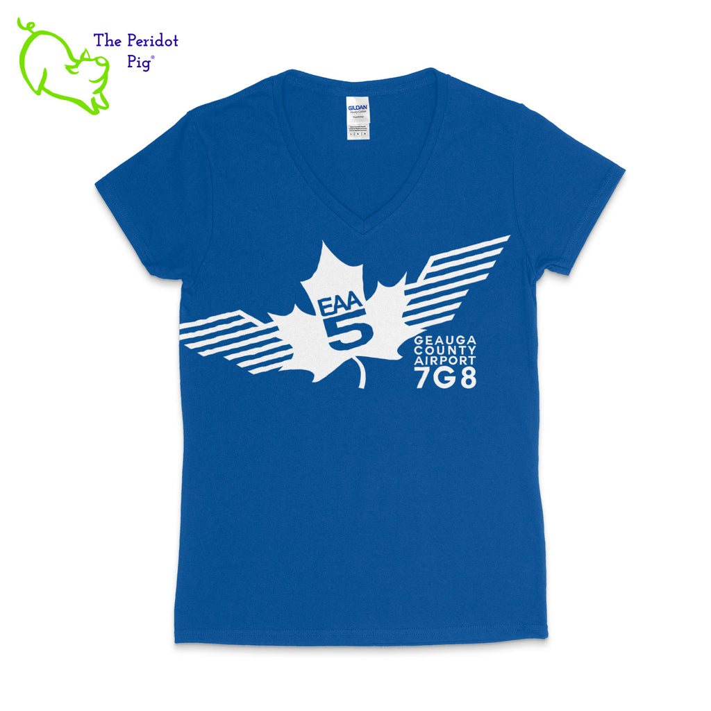 Crafted from a soft and comfortable material, this t-shirt features a slimmer cut, v-neck collar style and the EAA Chapter 5 logo in your choice of color on the front. You can also chose from four different colors for the shirt. The logo is located on the front and slightly wraps around the side of the shirt.