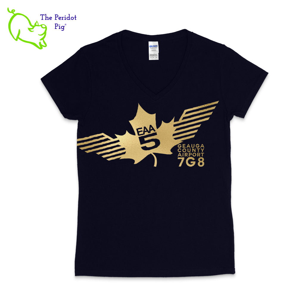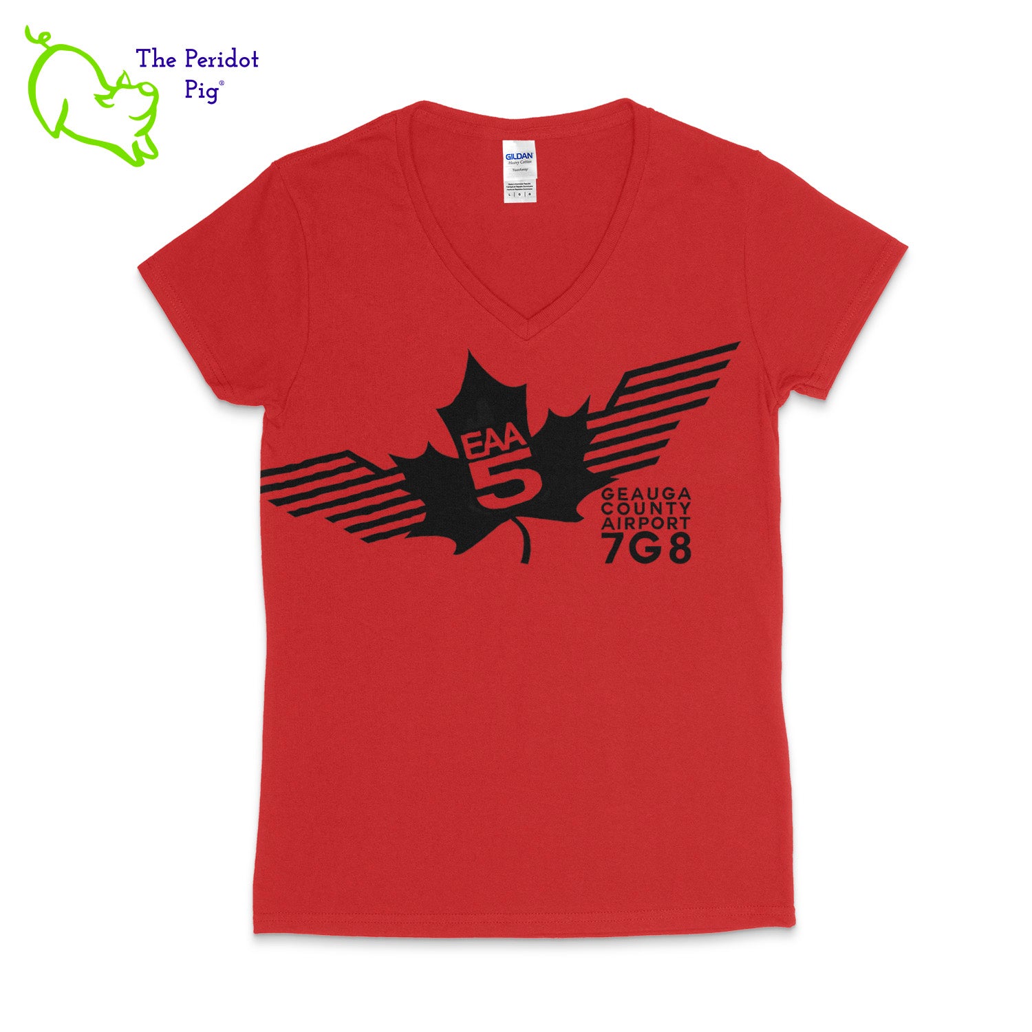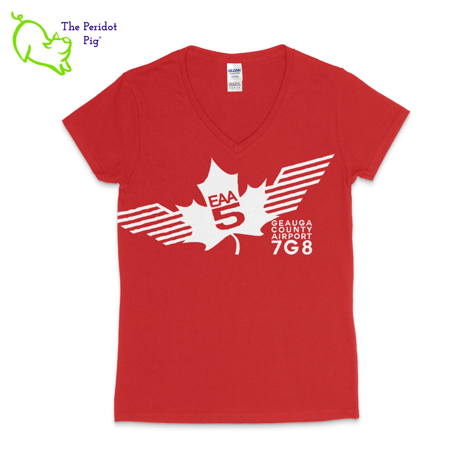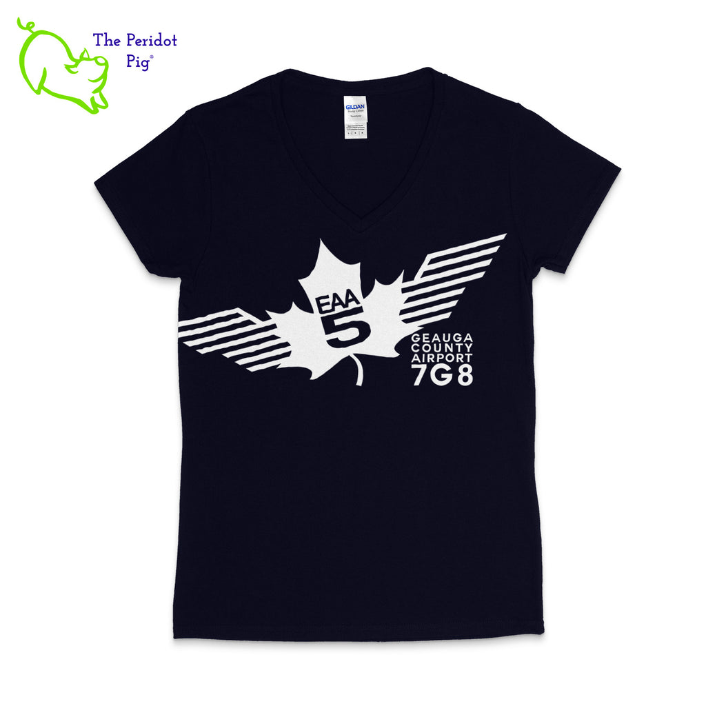 Crafted from a soft and comfortable material, this t-shirt features a slimmer cut, v-neck collar style and the EAA Chapter 5 logo in your choice of color on the front. You can also chose from four different colors for the shirt. The logo is located on the front and slightly wraps around the side of the shirt.