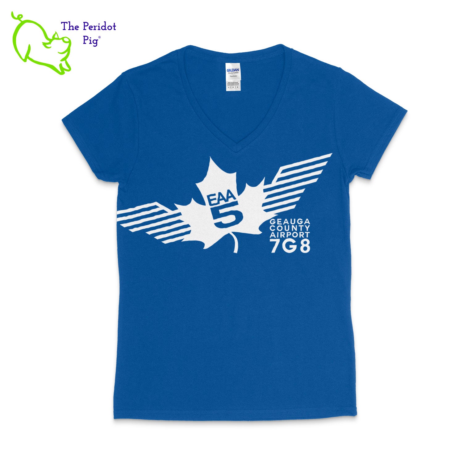 Show your EAA Chapter 5 pride with this stylish v-neck t-shirt. Whether you are a member of the Experimental Aircraft Association or just a fan, these shirts are a great add to your wardrobe staples.