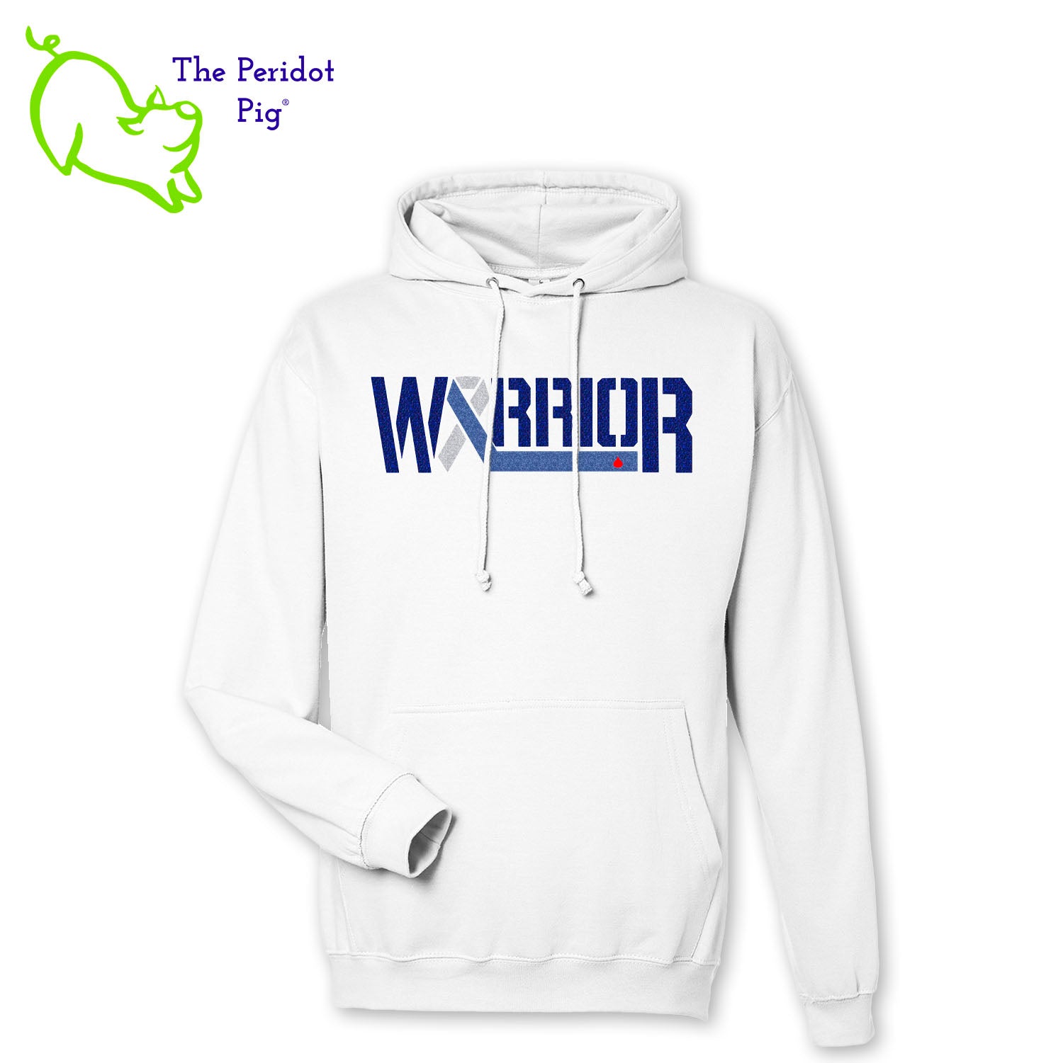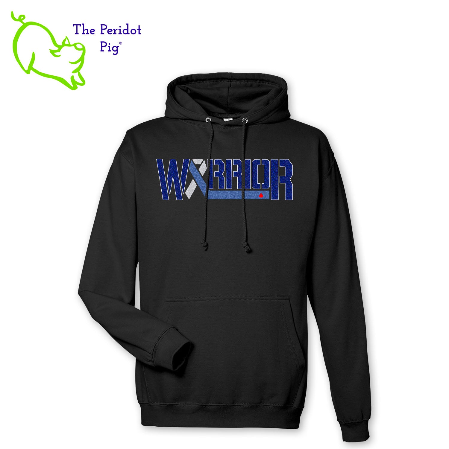 Fall is here and we need some warm gear! These hoodies are now available to celebrate November being National Diabetes Month. Here's a medium-weight comfy pullover hoodie featuring the word "Warrior" and the Diabetes Type 1 ribbon on the front. The image is crafted in dark blue holographic vinyl with silver and light blue glitter as well. The turquoise version has a gray contrasting hood interior and gray strings.