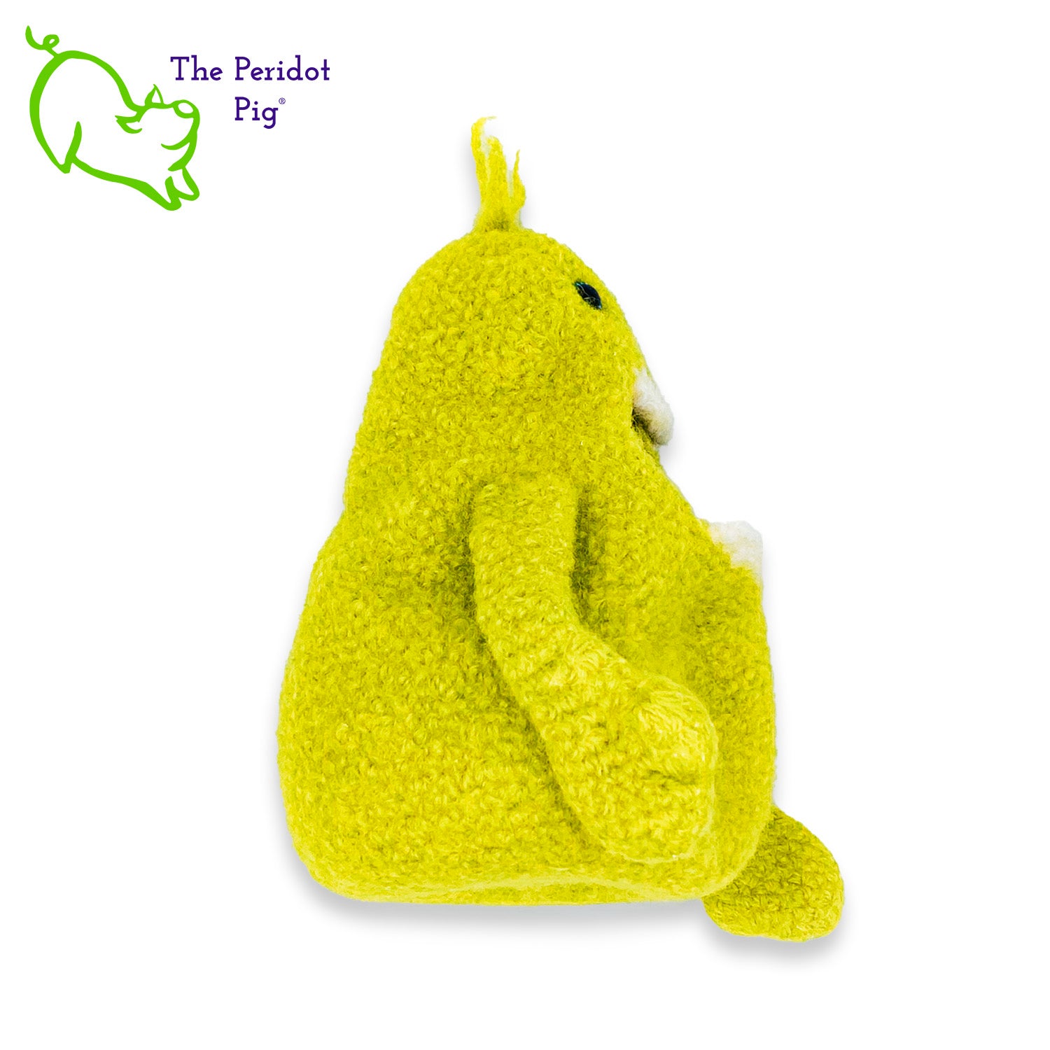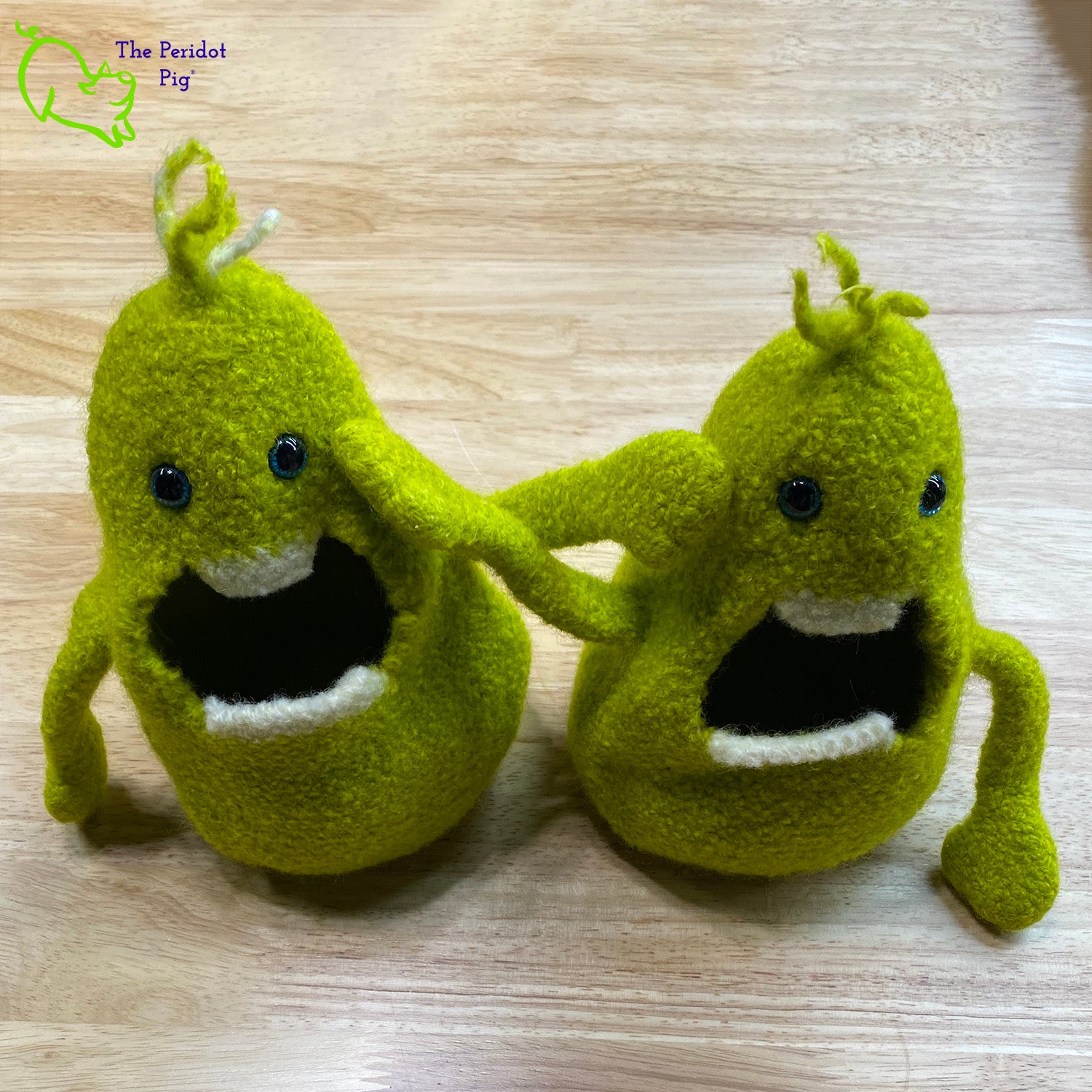 Gary has a big mouth! He's not loud though...he just likes to cram stuff in his big mouth. He prefers candy but you could easily fill him with anything.  His dream is to show up in a kid's Easter basket one day. Definitely needs to be a special kid that appreciates little monsters like Gary. He's made of 100% wool that has been felted down to create his hollow body. His arms are floppy and he has a little tuft of his pear green hair on top.  His eyes are a bright blue.