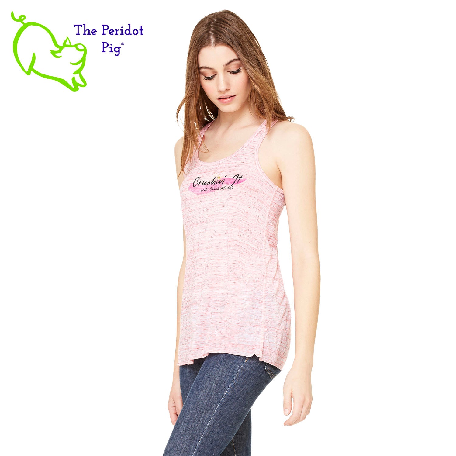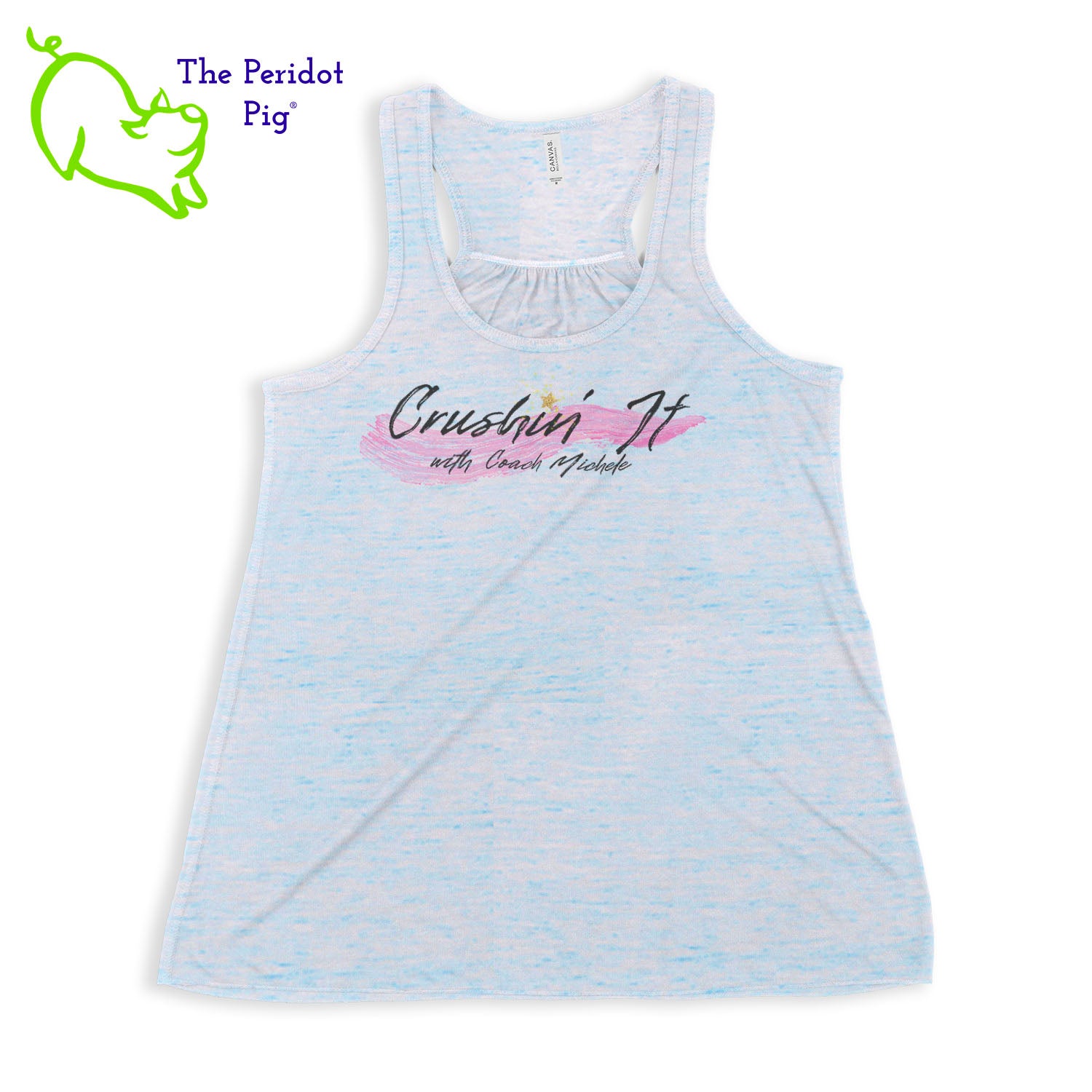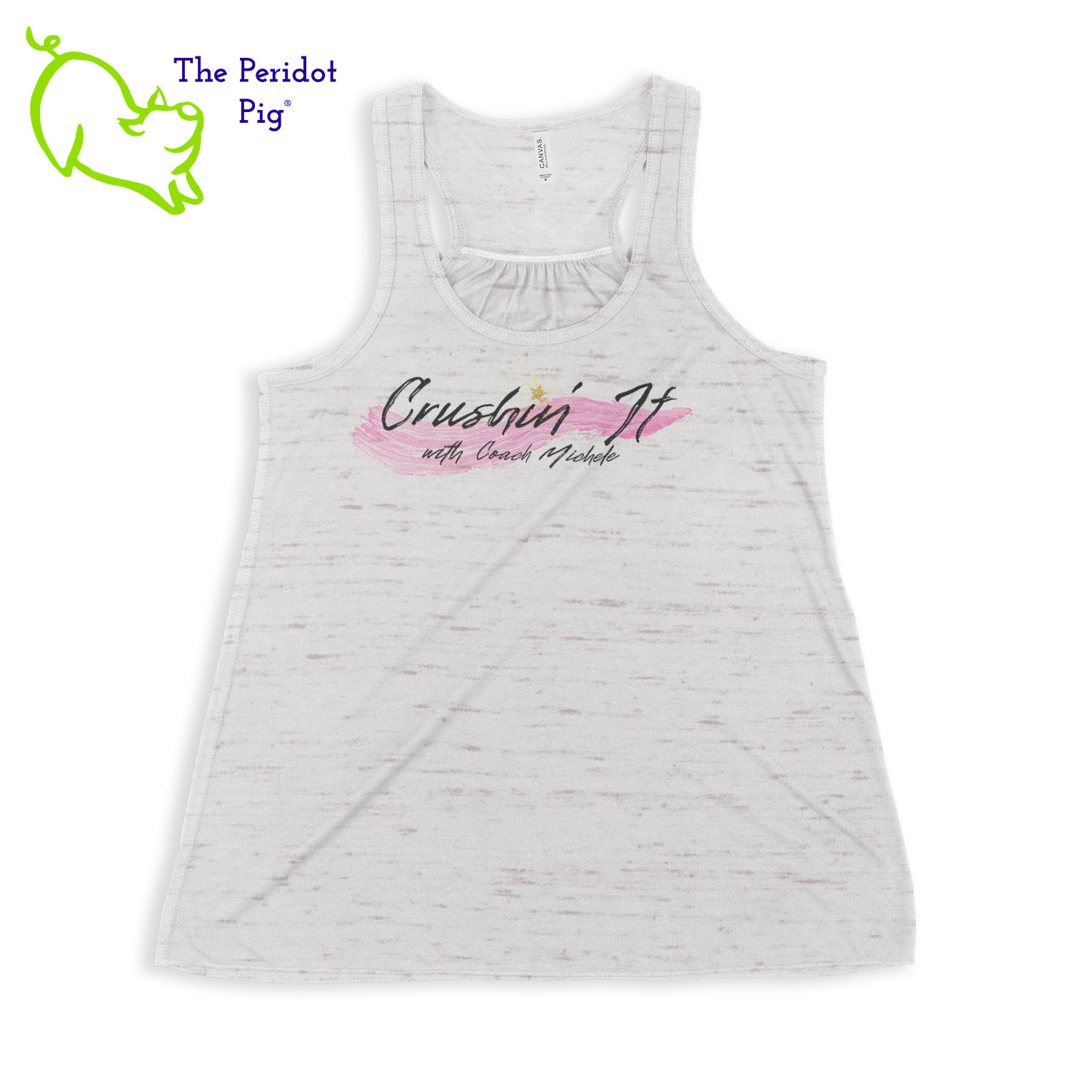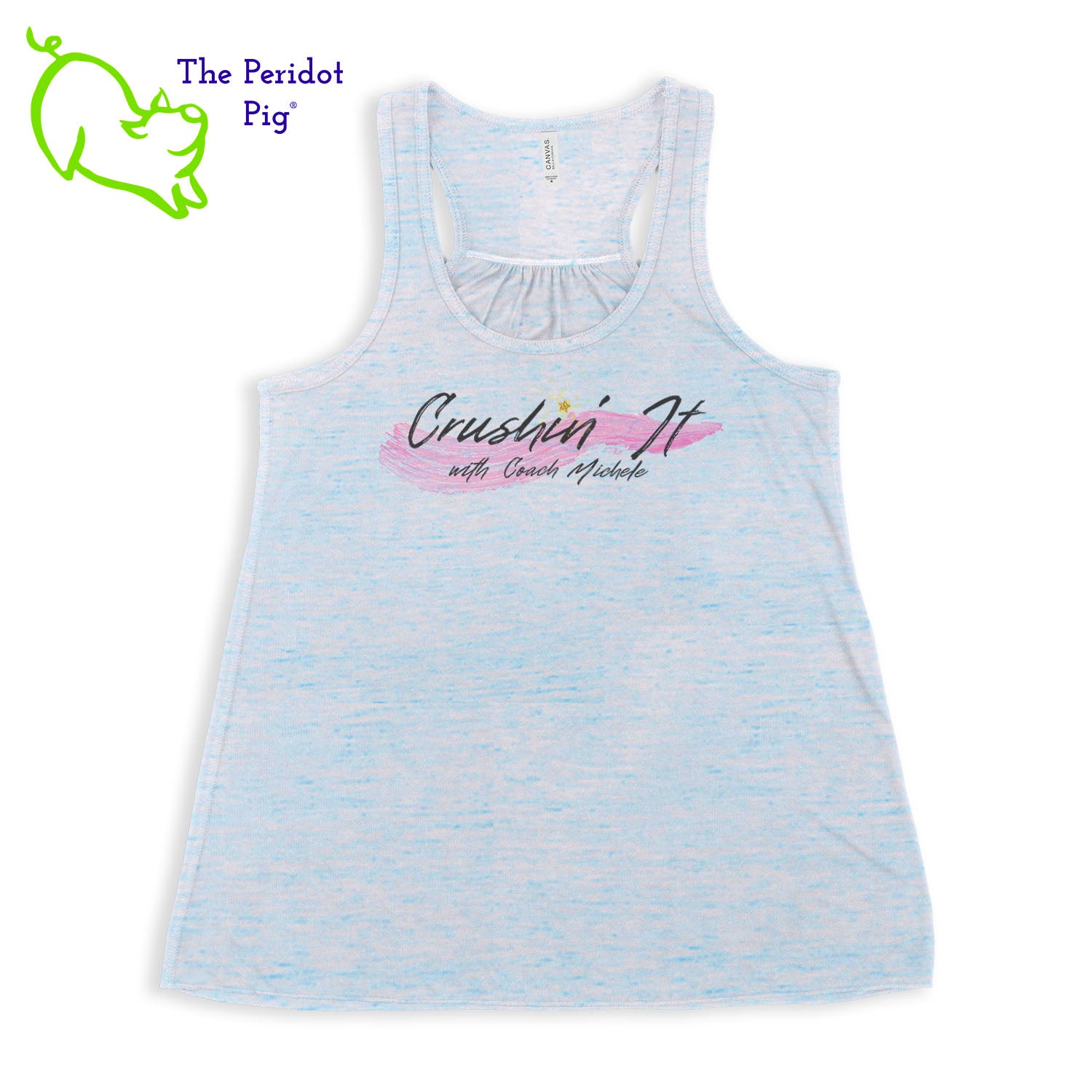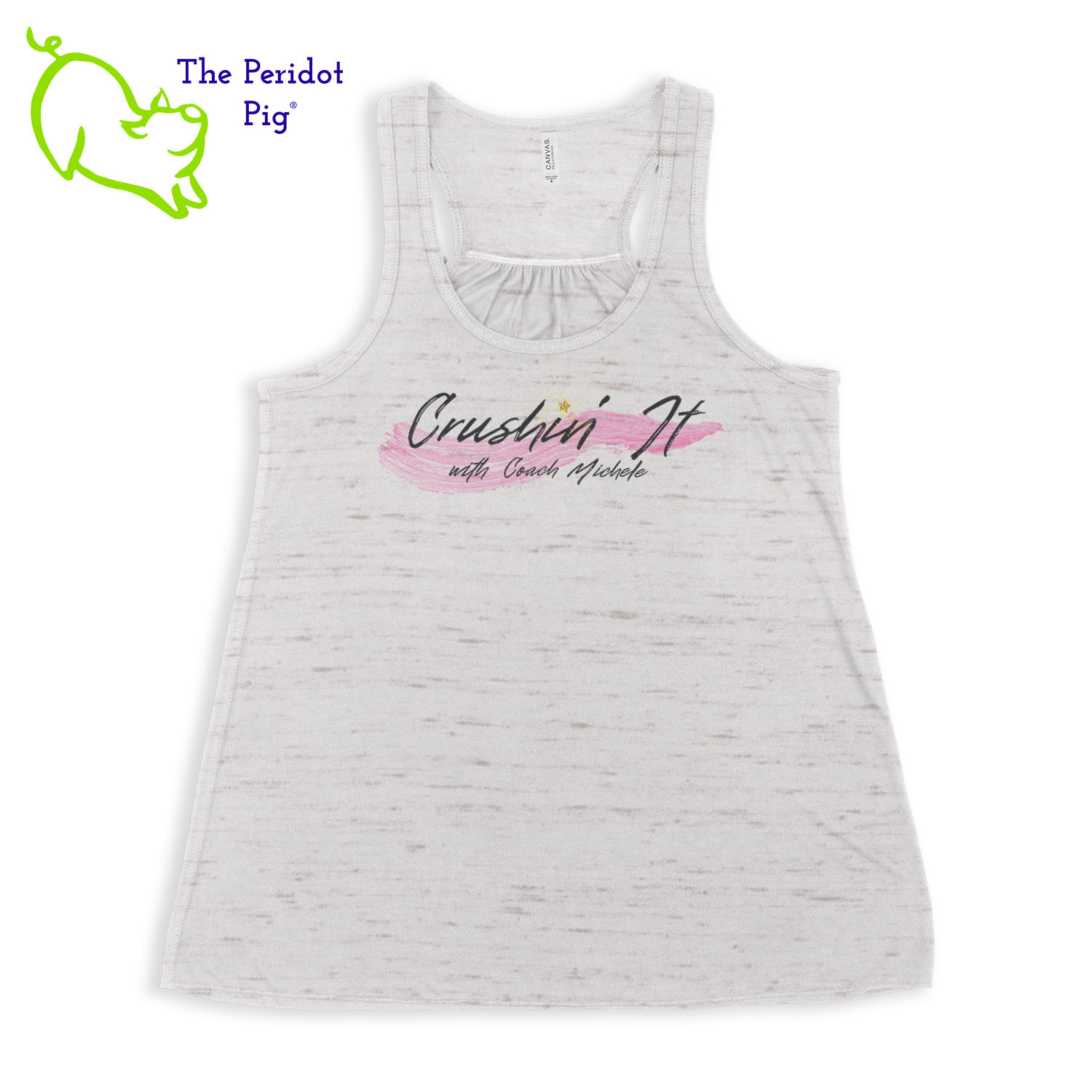This racerback tank is super soft, lightweight, and form-fitting (but not too tight in the mid-section) with a flattering cut and raw edge seams for an edgy touch. The front features Coach Michele Smits' Crushin' It! logo and the back is blank. There's also a small gold, glitter star over the "i" because everyone needs a little sparkle! The print will be in a "vintage" look that is slightly faded on the white, pink and athletic heather versions. On the marble colors, the print is a little more vivid.