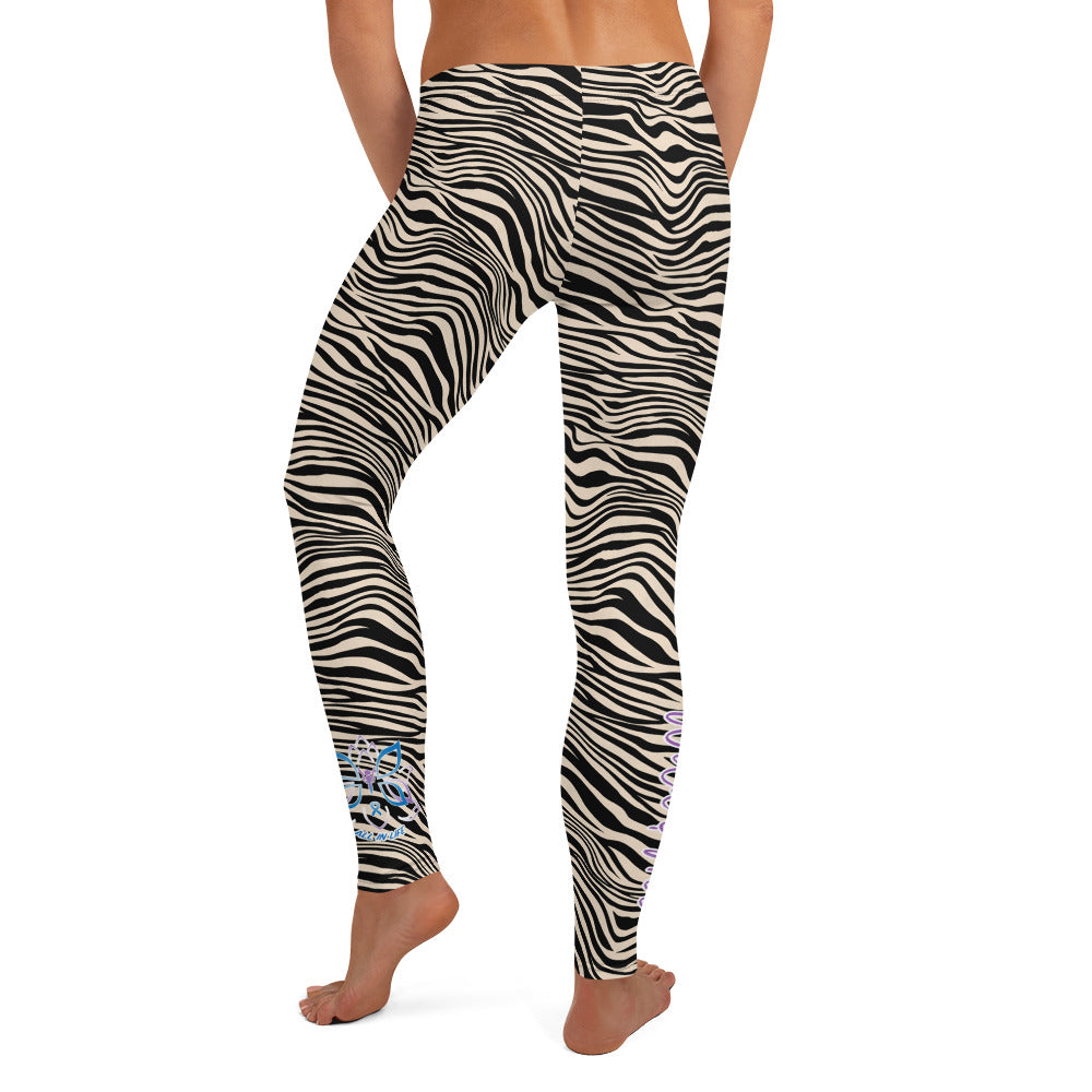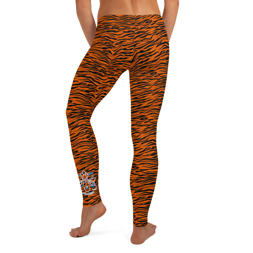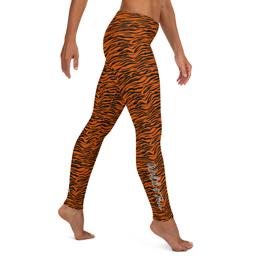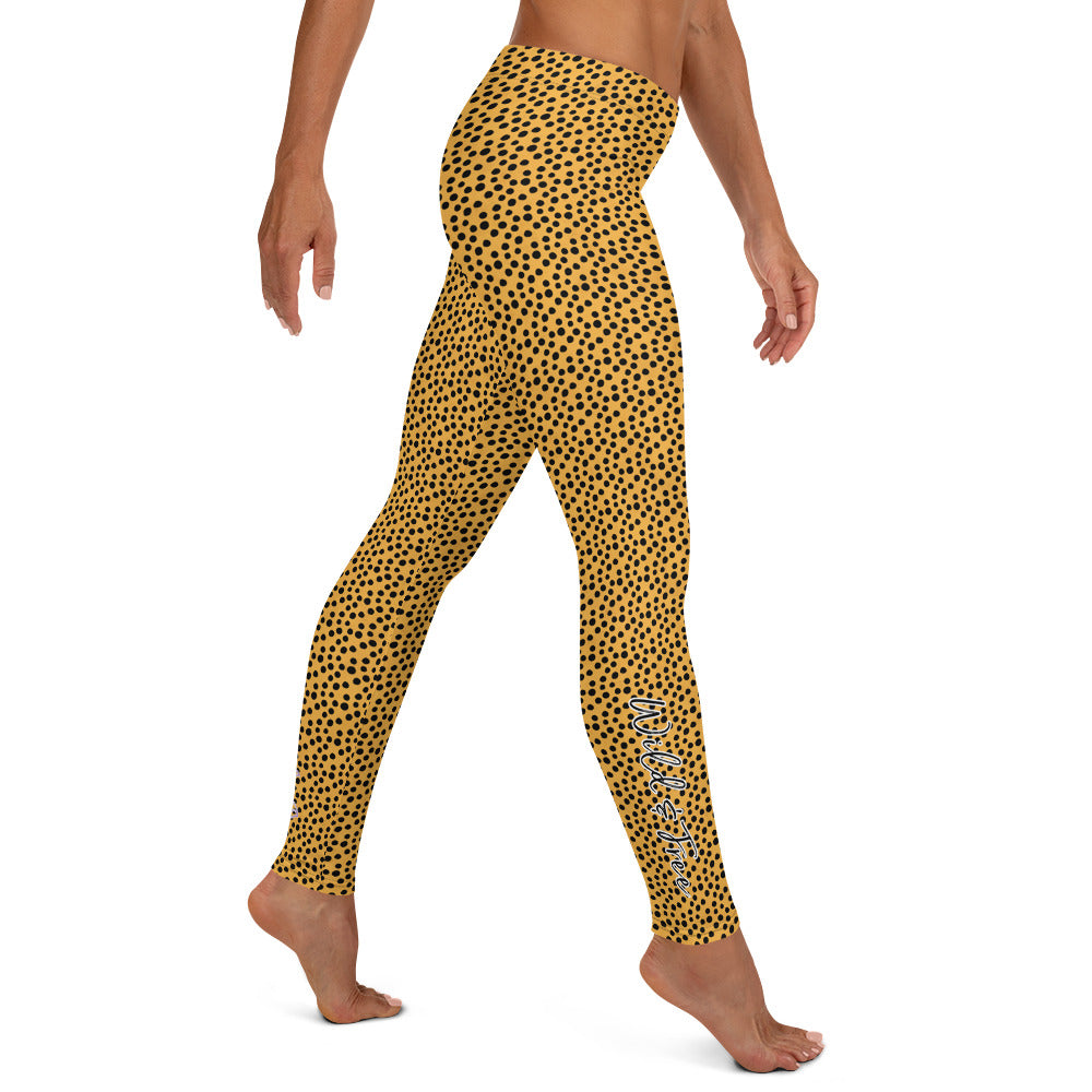 Kristin Zako embodies the "Wild & Free" spirit of her animal print leggings. These are printed in vivid color with a stylized print. The words, "WILD & FREE" are down the right leg and you'll find Kristin's logo on the lower left leg.
