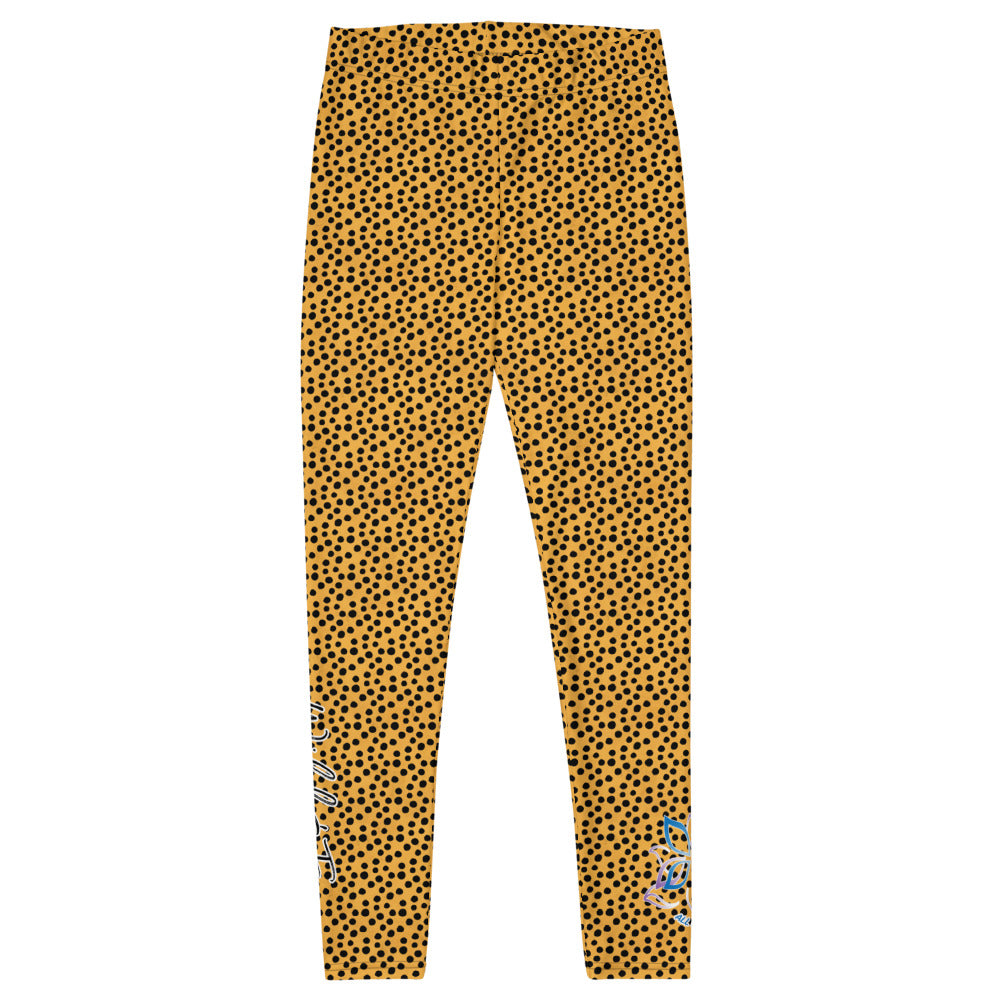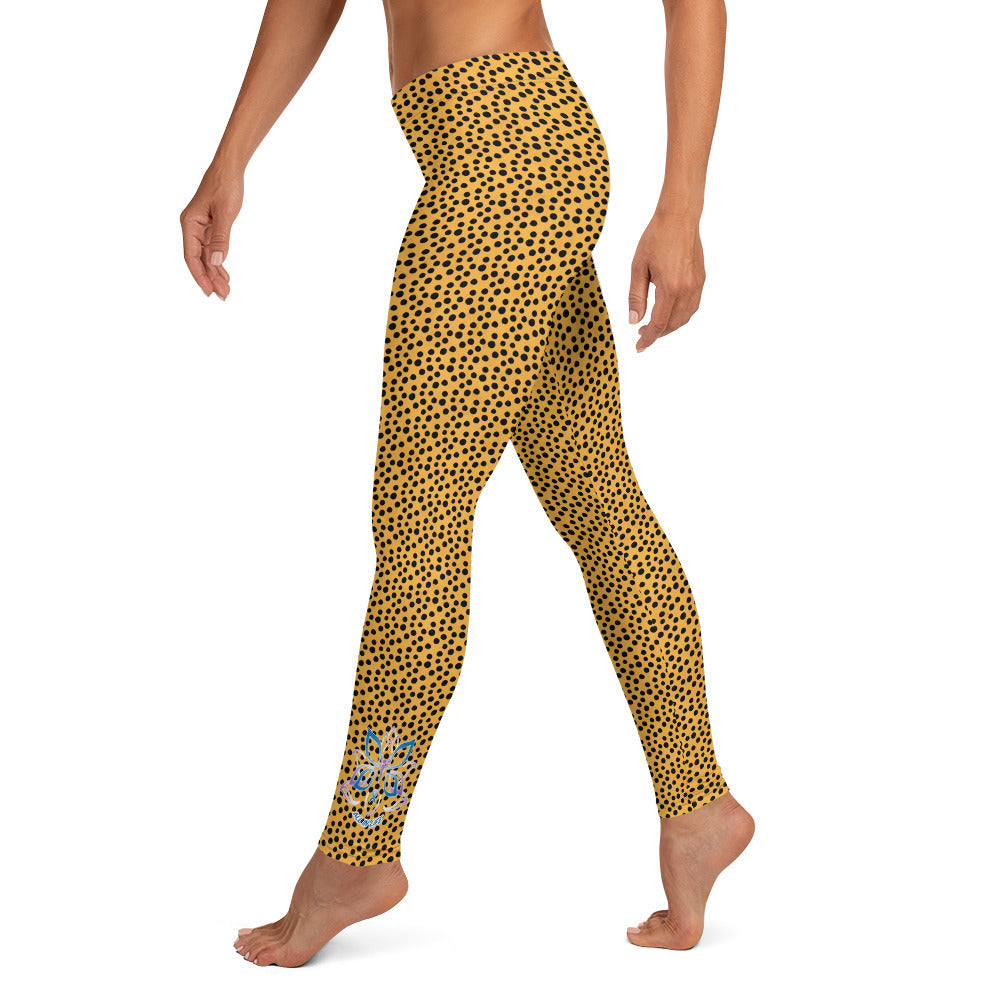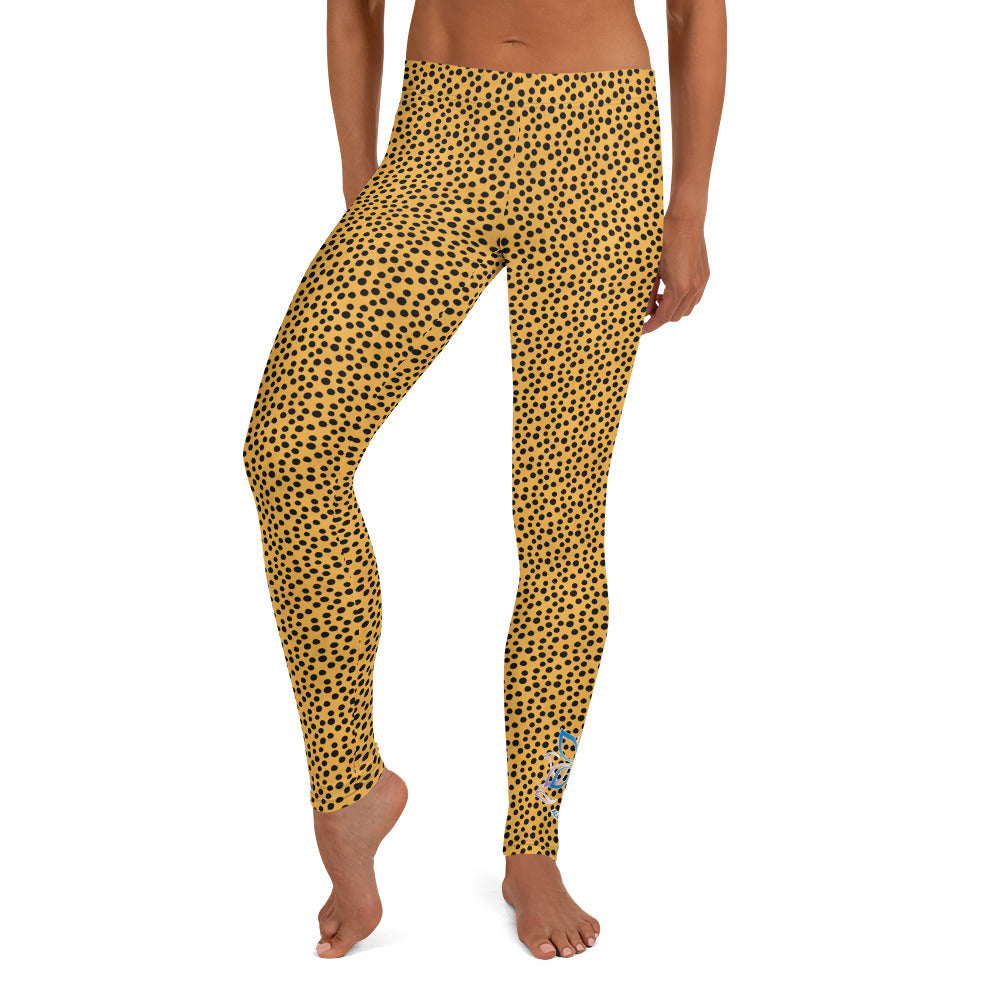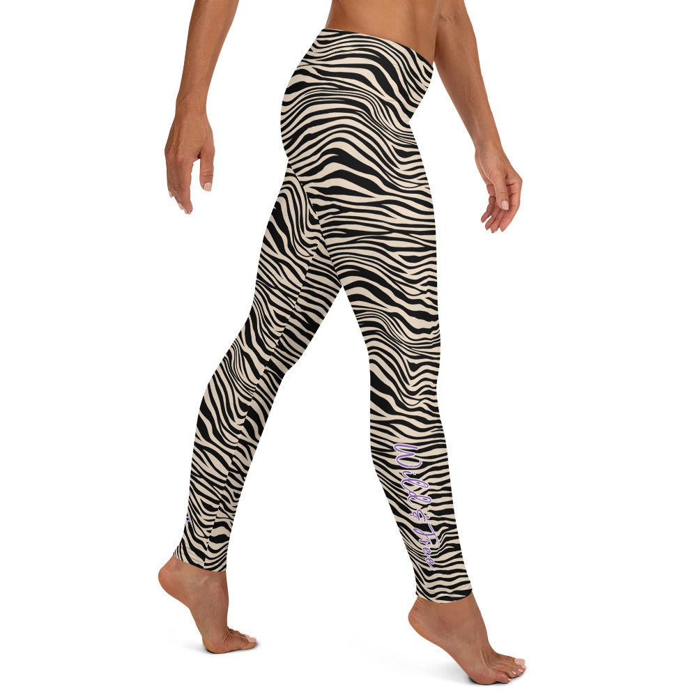 Kristin Zako embodies the "Wild & Free" spirit of her animal print leggings. These are printed in vivid color with a stylized print. The words, "WILD & FREE" are down the right leg and you'll find Kristin's logo on the lower left leg.