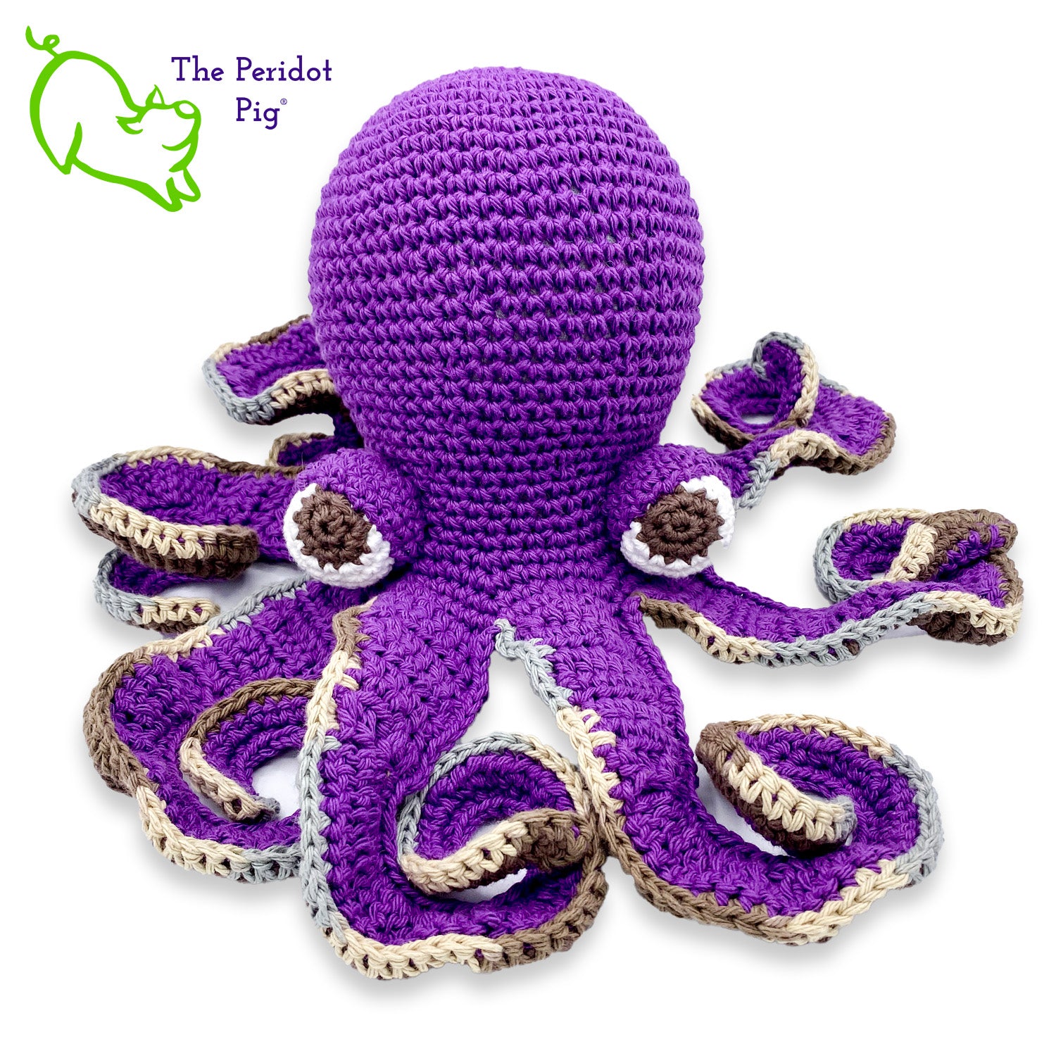 My husband thought an octopus only comes in black but we begged to differ! The North Pacific Giant Octopus is a lovely shade of orange like our Olivia. At first glance, she's a bit intimidating but in reality, she is soft and cuddly. Olivia is made from sturdy cotton and is meant to last a life-time. Also available in a purple too!