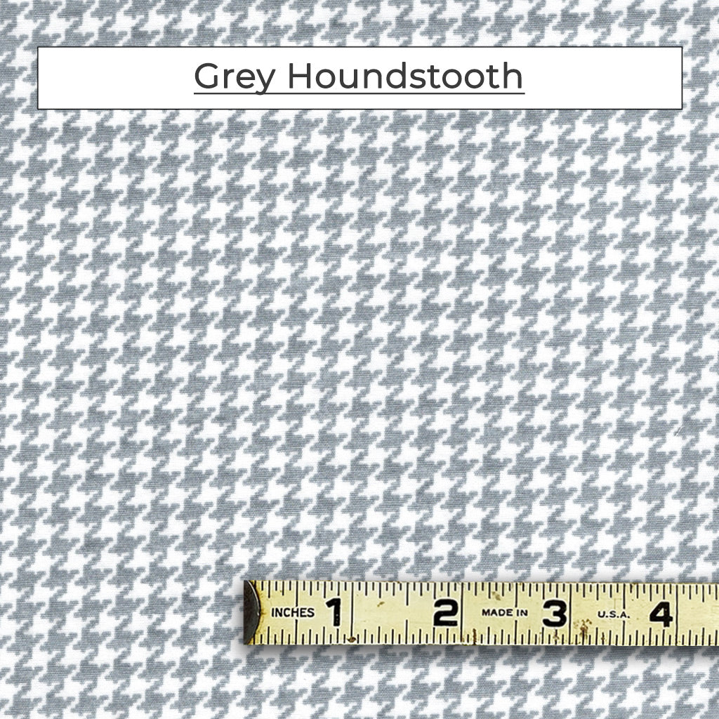 This pattern is a small grey houndstooth pattern.  It makes us think of racing cars and the Crimson Tide.  The Grey Houndstooth fabric is a mix of grey and white in a repeating houndstooth pattern.