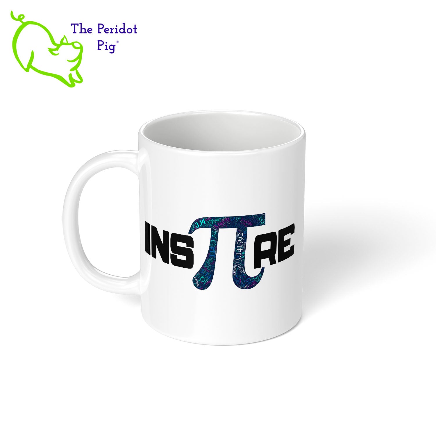 Why only celebrate PI day once a year? You can use our InsPIre mug every day! This mug features our PI inspire motif and the Healthy Pi Inc logo printed in vivid color on a white, glossy ceramic mug.