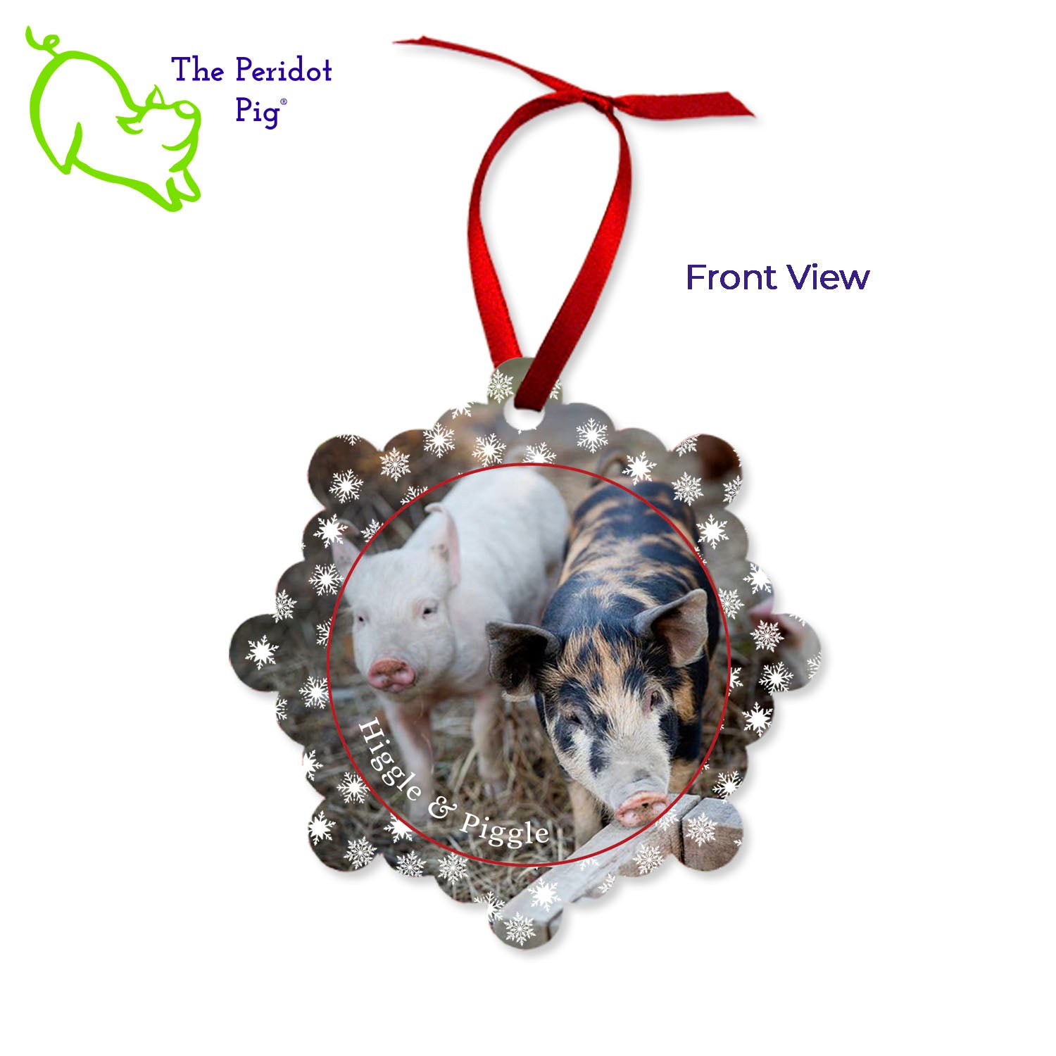 Create a beautiful keepsake ornament for the holidays! These aluminum ornaments can be printed in vivid color with the photo or artwork of your own choice. Both sides can be customized. The ornament is light weight for hanging on the tree and comes with a ribbon hanger. We've shown them here with the year on the back with a fun Christmas candy stripe pattern. On the front, choose from 5 different border styles.
