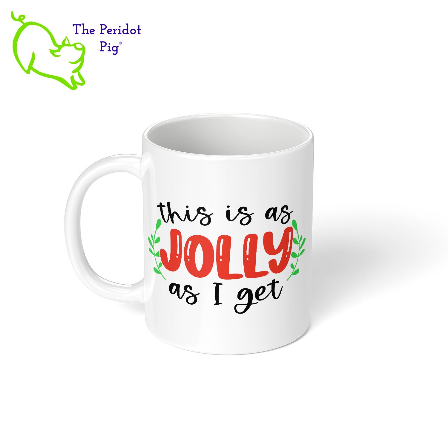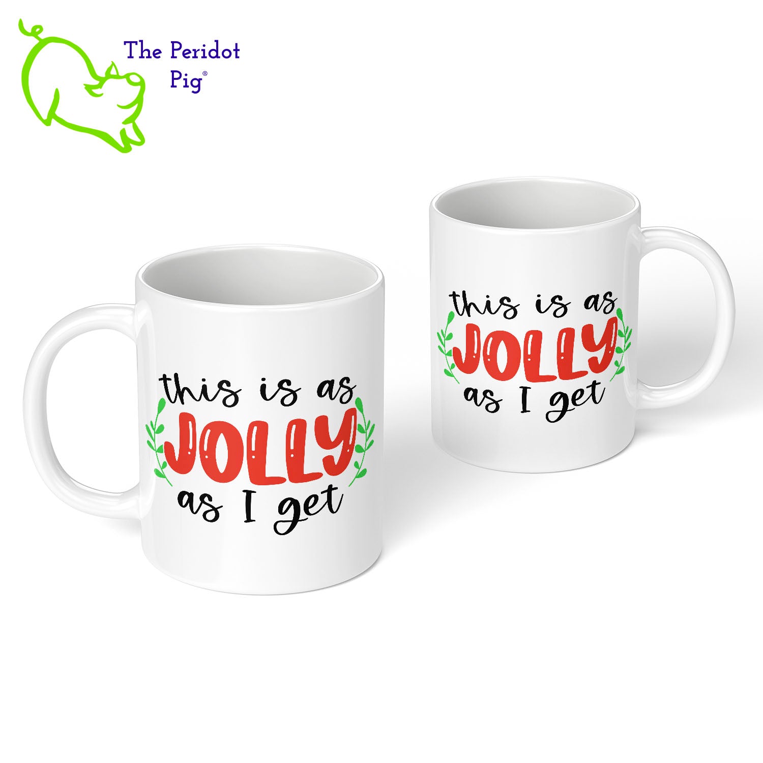 We're not our best in the morning let alone, the holidays. This mug sums it up perfectly! Printed in vibrant red and green, our 11 oz coffee mug says, "This is as jolly as I get" with a little mistletoe on either side.