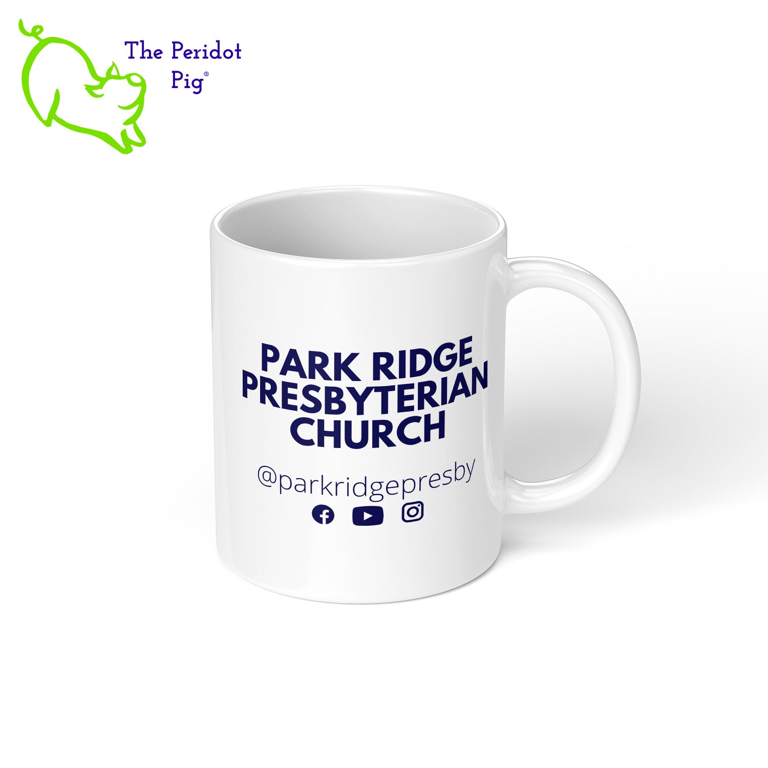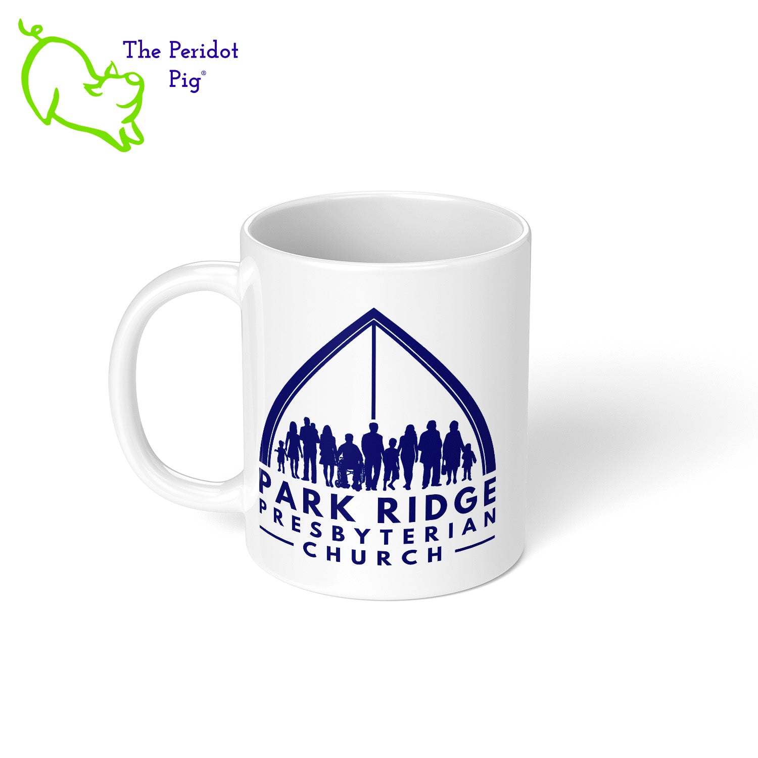 Introducing the stylish Park Ridge Presbyterian mug! Crafted from glossy white ceramic and proudly displaying their logo and name on both sides, this classic mug is the perfect addition to any kitchen.