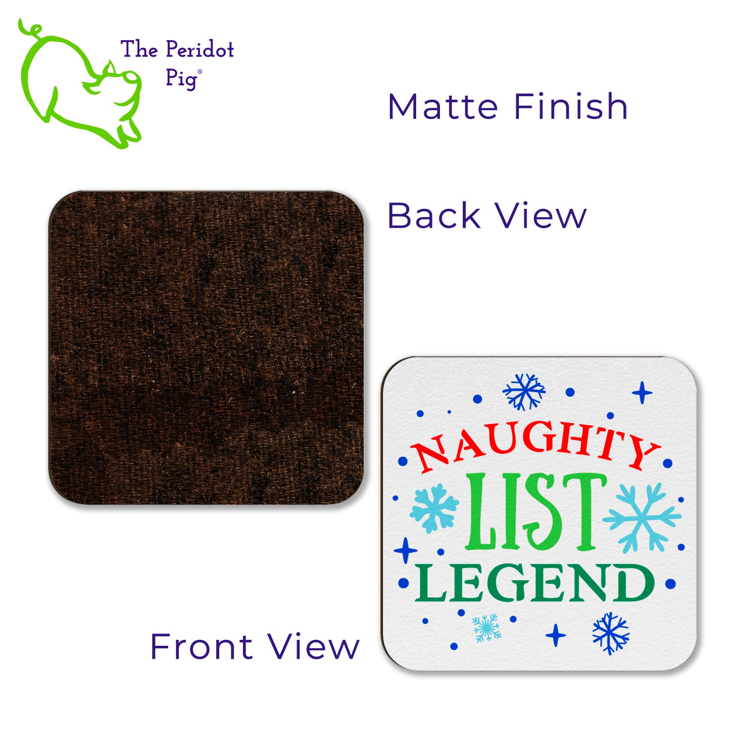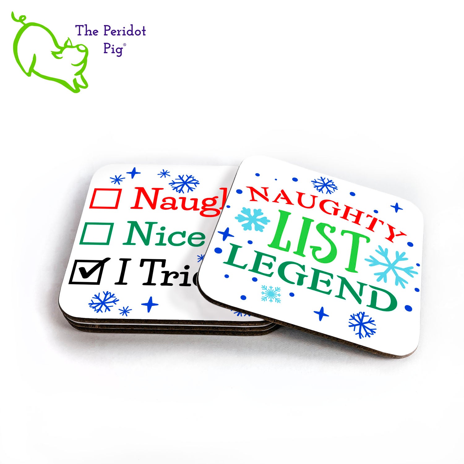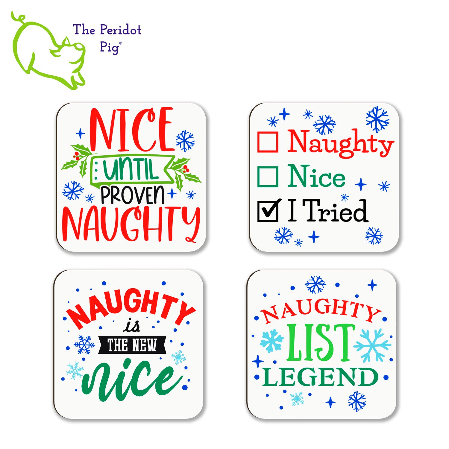 Here's to being naughty! This set of four coasters is printed in bright colors on either a matte or a gloss coaster. We have four fun naughty themed sayings printed on these. Contact us if you want them in a different mix of sayings.